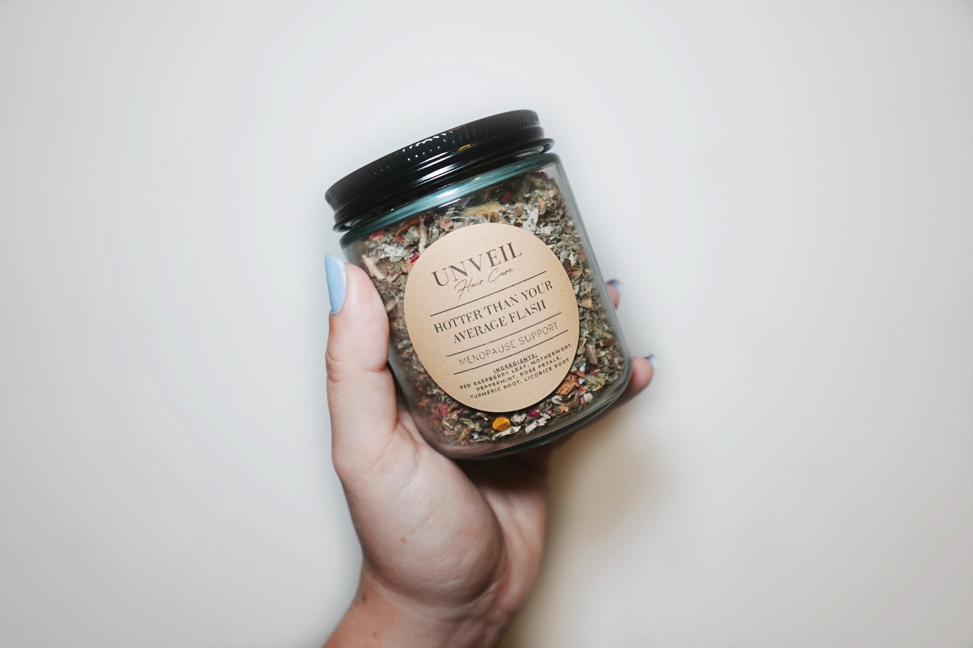 Benefits: This blend combines hormone-balancing herbs like red raspberry leaf and motherwort with cooling peppermint and anti-inflammatory turmeric to soothe menopausal symptoms.