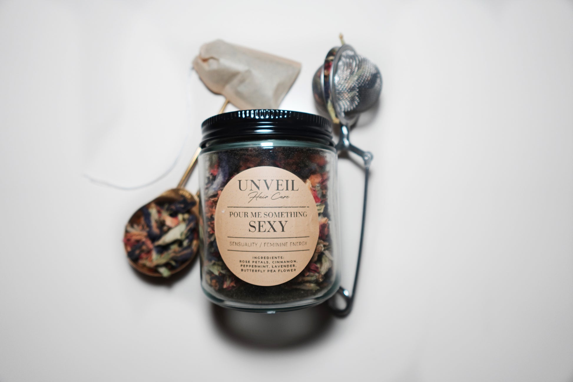 Ingredients: Rose Petals, Cinnamon, Peppermint, Lavender, Butterfly Pea Flower